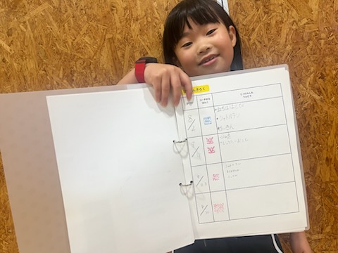 Ans:自分がトレーニング中に何色が多かったのか、「赤をだしたいんだ!」などです。(シールを貼るページです)
